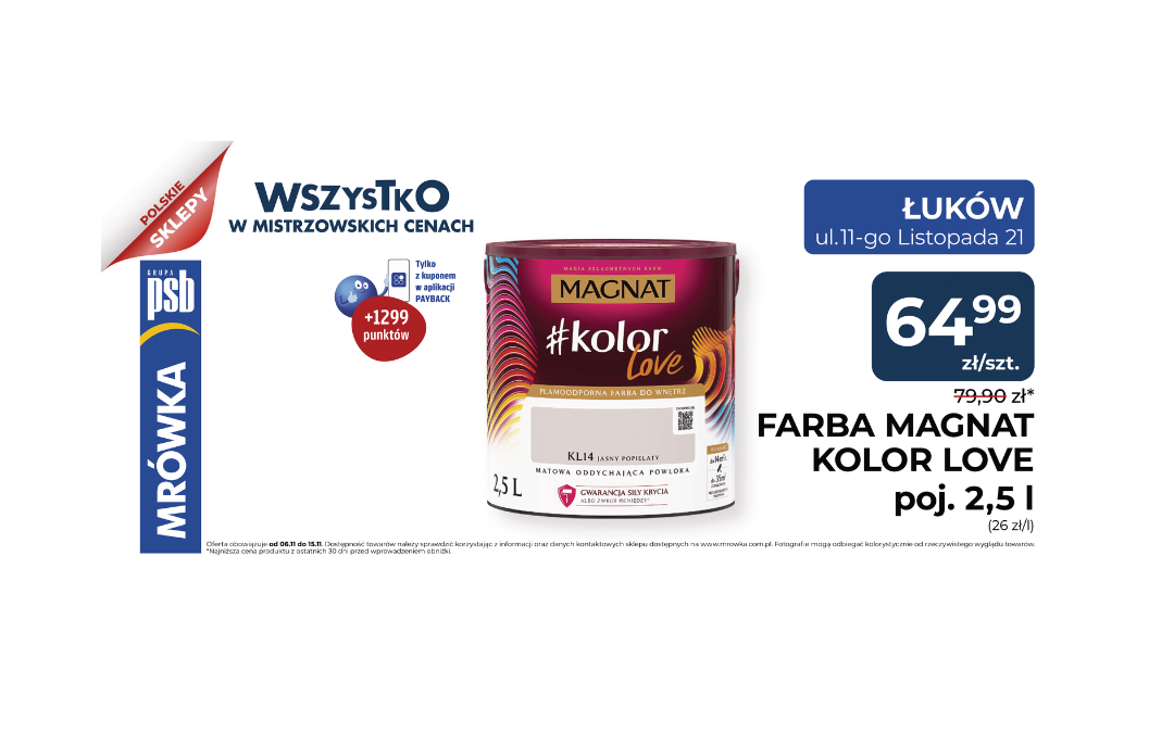 👉 Odwiedź Mrówkę w Łukowie i skorzystaj z promocji na farby MAGNAT Kolor Love – niech Twój dom zyska kolor, w którym się zakochasz! 💕