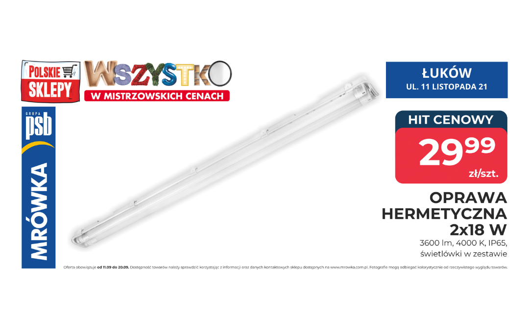 Oprawa 2x18W to świetny wybór, jeśli zależy Ci na niezawodnym oświetleniu w wymagających warunkach. Doskonale sprawdzi się w garażach, piwnicach, halach produkcyjnych czy magazynach, zapewniając bezpieczeństwo i wygodę w pracy.