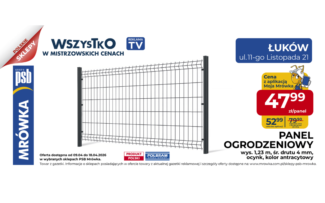 Panel ogrodzeniowy Polbram – tylko 47,99 zł z aplikacją Mrówka