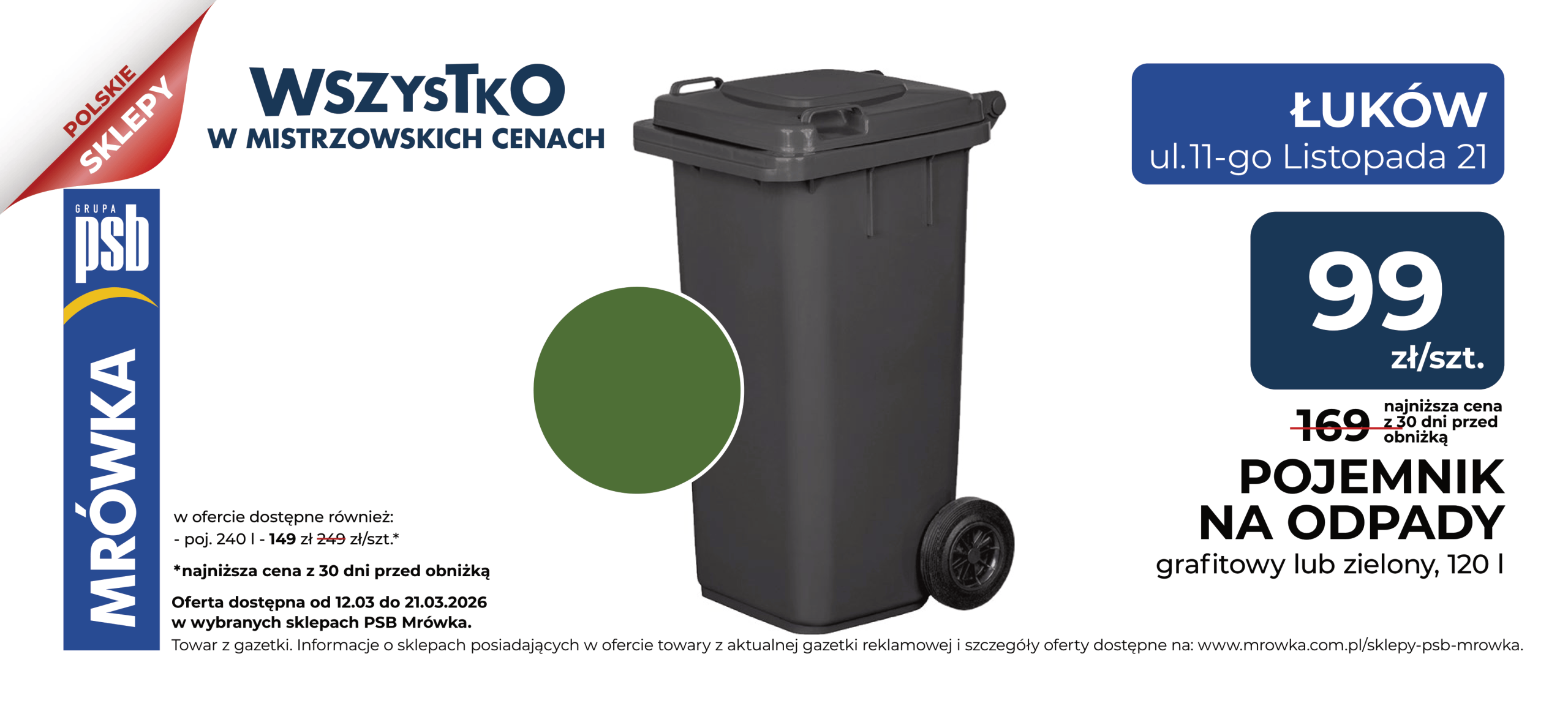 Duży pojemnik na odpady w kolorze zielonym lub grafitowym to praktyczne i niezbędne wyposażenie każdego gospodarstwa domowego. Doskonale sprawdzi się zarówno przy domu jednorodzinnym, jak i na posesji czy w firmie, zapewniając wygodne i higieniczne miejsce do gromadzenia odpadów.