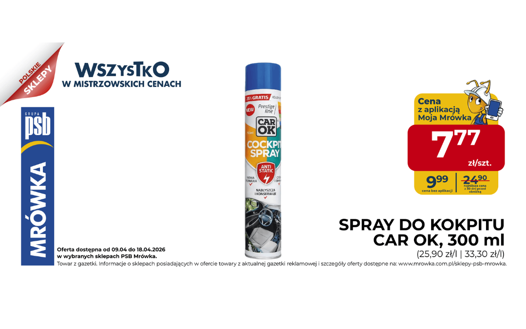 Kup spray do kokpitu za 7,77 zł z aplikacją Mrówka →
